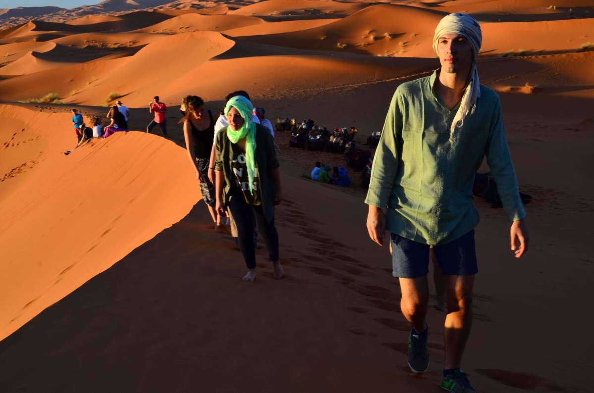 A road experience in the desert, which allows a total immersion in the landscape and in the local culture, especially organized with the assistance of dromedaries and expert guides to explore environments in the Sahara. Hiking in the desert is a respectful way of living in the Sahara, synonymous with sunshine, but also with caravans that do not travel the immense distance in silence. Step by step, we will emerge between Erg and Oued, between earth and sky. We will live at the natural rhythm of the elements, and the light of the stars will mark the rhythm. Tolerance to the environment and the culture of the desert are the main basis of our participation. We wish we were travellers, not tourists. We want to learn the local language and get to know the culture in its entirety.
