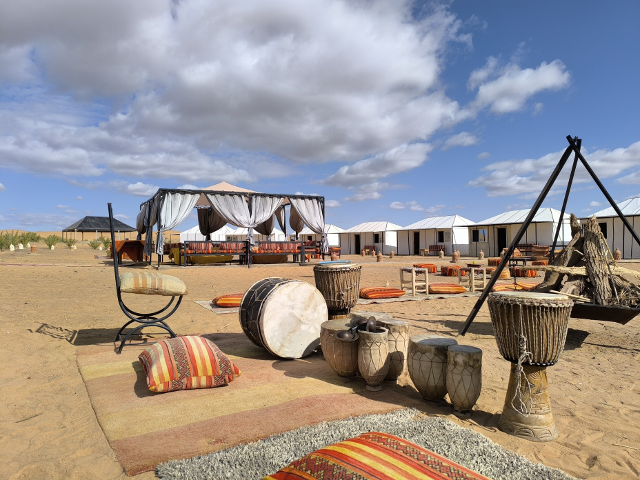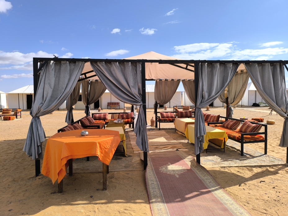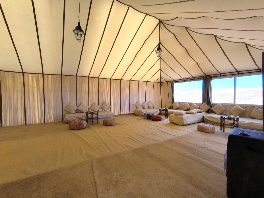 In the middle of the Merzouga desert, in Erg Znigui, is the Luxury Bega Camp. A unique space where you will enjoy the tranquility and Berber hospitality. The camp offers a balance between traditional Berber design and current comfort. It has 6 luxurious and spacious fully equipped jaimas. The Luxury Bega Camp offers visitors the opportunity to escape from the multitude of cities and get away from the outside world to enjoy a magical and unique experience.